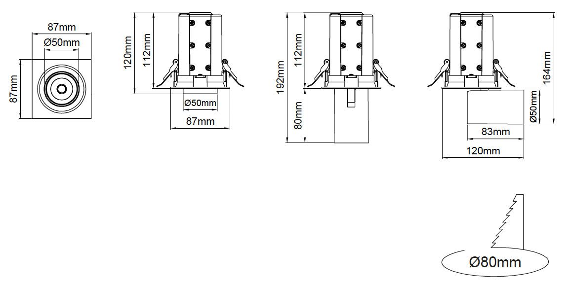 | 7 | 7W - 180mA | 827 | IRC>80 - 2700K | 930 | IRC>90 - 3000K | ![]() | MOI. | 30° - Moyen | ![]() | 01 | blanc |