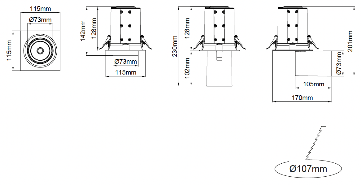 | 15 | 15W - 350mA | 830 | IRC>80 - 3000K | 935 | IRC>90 - 3500K | ![]() | MOI. | 35° - Moyen | ![]() | 02 | ral 9010 |