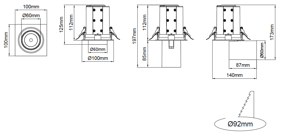 | 7 | 7W - 180mA | 835 | IRC>80 - 3500K | 940 | IRC>90 - 4000K | ![]() | W.F. | 60° - Large inondation | ![]() | 03 | noir |