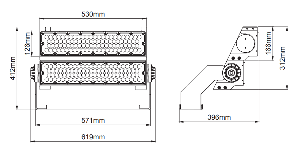 -- Projecteur LED avec sortie lumineuse symétrique.
