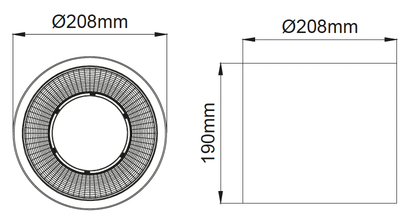 | 830 | IRC>80 - 3000K | 930 | IRC>90 - 3000K | ![]() | MOI. | 23° - Moyen | ![]() | 02 | ral 9010 | ||
