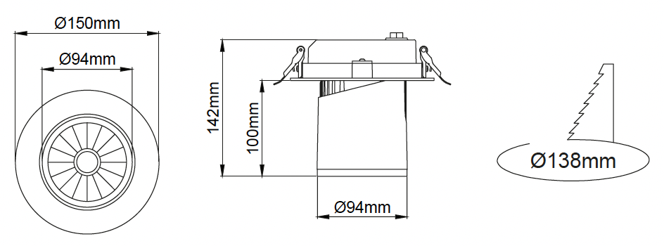 | 28 | 28W - 700mA | 830 | CRI>80 - 3000K | 9830 | CRI>98 - 3000K | ![]() | MICH. | 30° – Mittel | ![]() | 02 | ral 9010 |