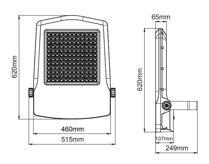 -- Projecteur LED avec sortie lumineuse symétrique.