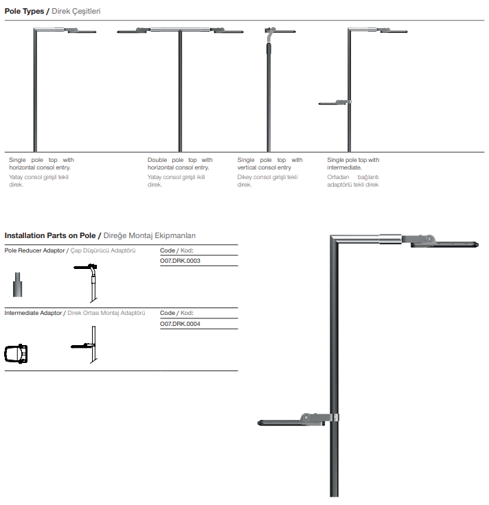 | Forme | Monté sur poteau |