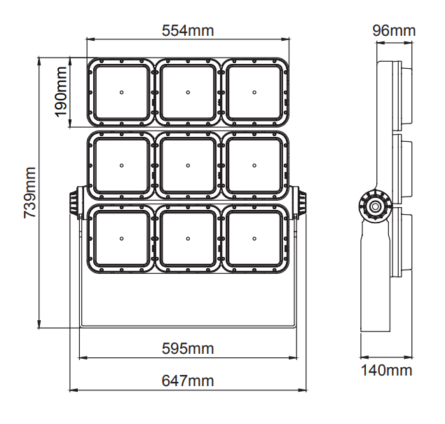 | 600 | 600 W – 910 mA | 730 | CRI>70-3000K | 830 | CRI>80 - 3000K | ![]() | MICH. | 41° – Mittel | ![]() | 02 | ral 9010 |