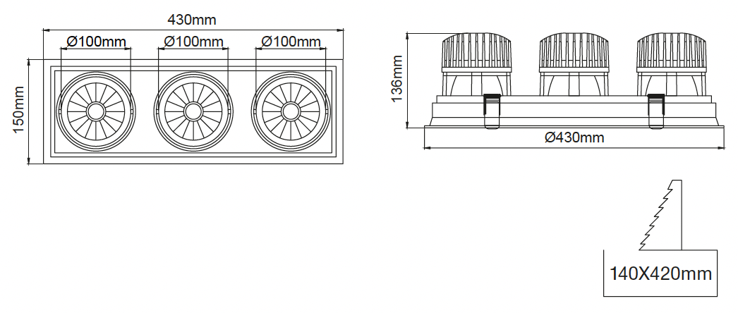 | 28 | 3x28W - 700mA | 835 | IRC>80 - 3500K | 9840 | IRC>98 -4000K | ![]() | FL | 3x40° - Inondation | ![]() | 03 | noir |