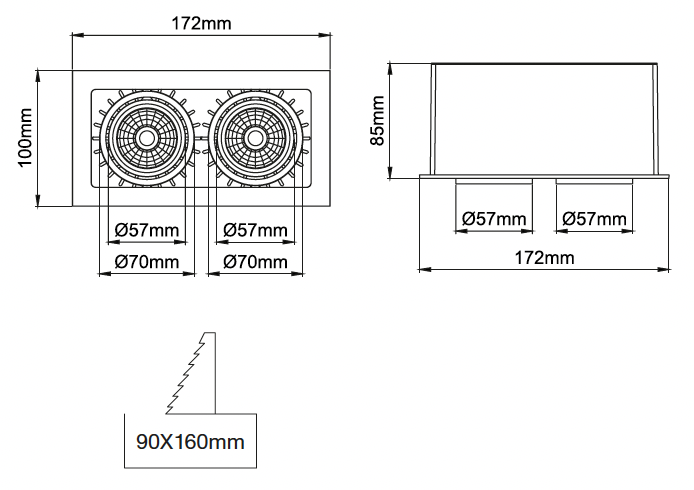| 7 | 2x7W - 180mA | 827 | IRC>80 - 2700K | 927 | IRC>90 - 2700K | ![]() | FL | 2x40° - Inondation | ![]() | 01 | blanc |