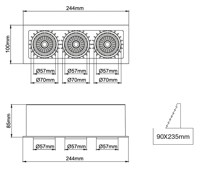 | 4 | 3x4W - 100mA | 830 | IRC>80 - 3000K | 930 | IRC>90 - 3000K | ![]() | 02 | ral 9010 | |||