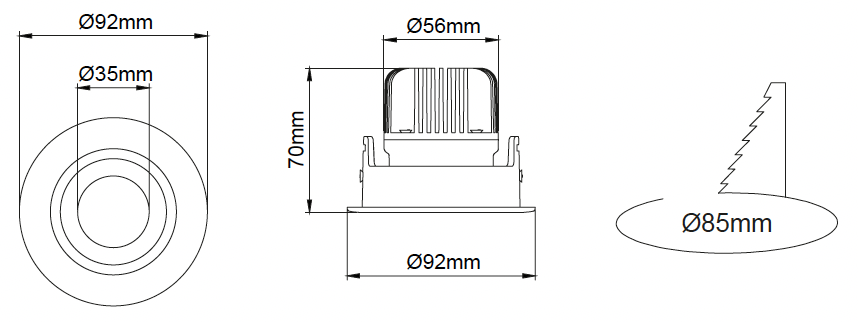 | 835 | CRI>80 - 3500K | 940 | CRI>90 - 4000K | ![]() | FL | 45° - Überschwemmung | ![]() | 03 | Schwarz | ||