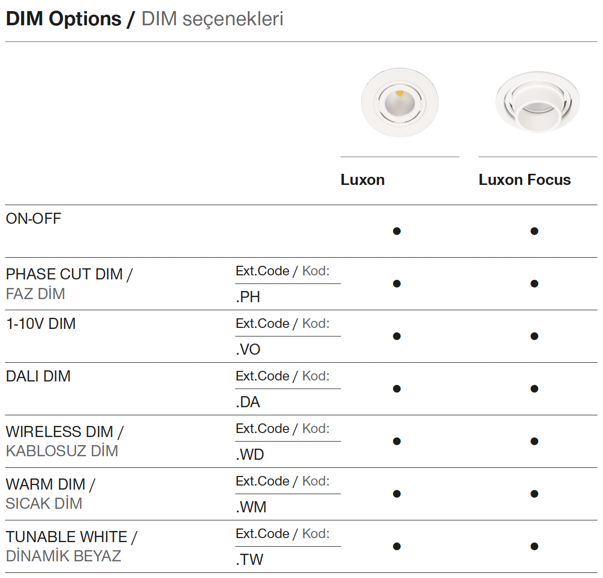 | Force | IRC | Code de commande | Kelvin | Lumen |