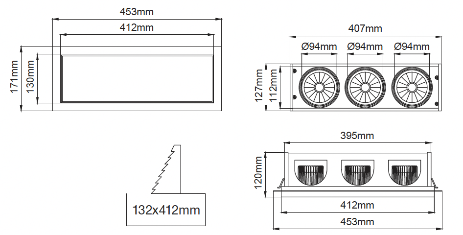| 24 | 3x24W - 600mA | 830 | CRI>80 - 3000K | 9830 | CRI>98 - 3000K | ![]() | MICH. | 3x30° - Mittel | ![]() | 02 | ral 9010 |