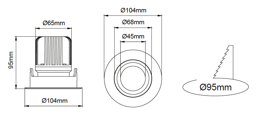 | 7 | 7W - 180mA | 835 | CRI>80 - 3500K | 940 | CRI>90 - 4000K | ![]() | W.F. | 60° – Breite Flut | ![]() | 03 | Schwarz |