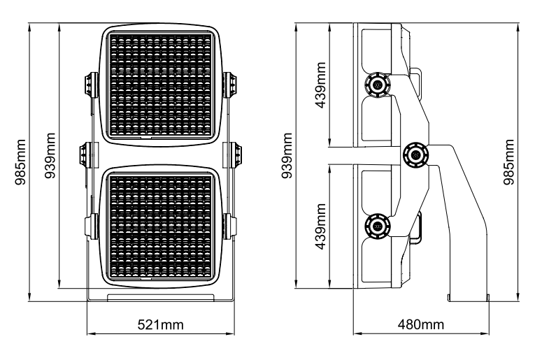 -- Projecteur LED avec sortie lumineuse symétrique.