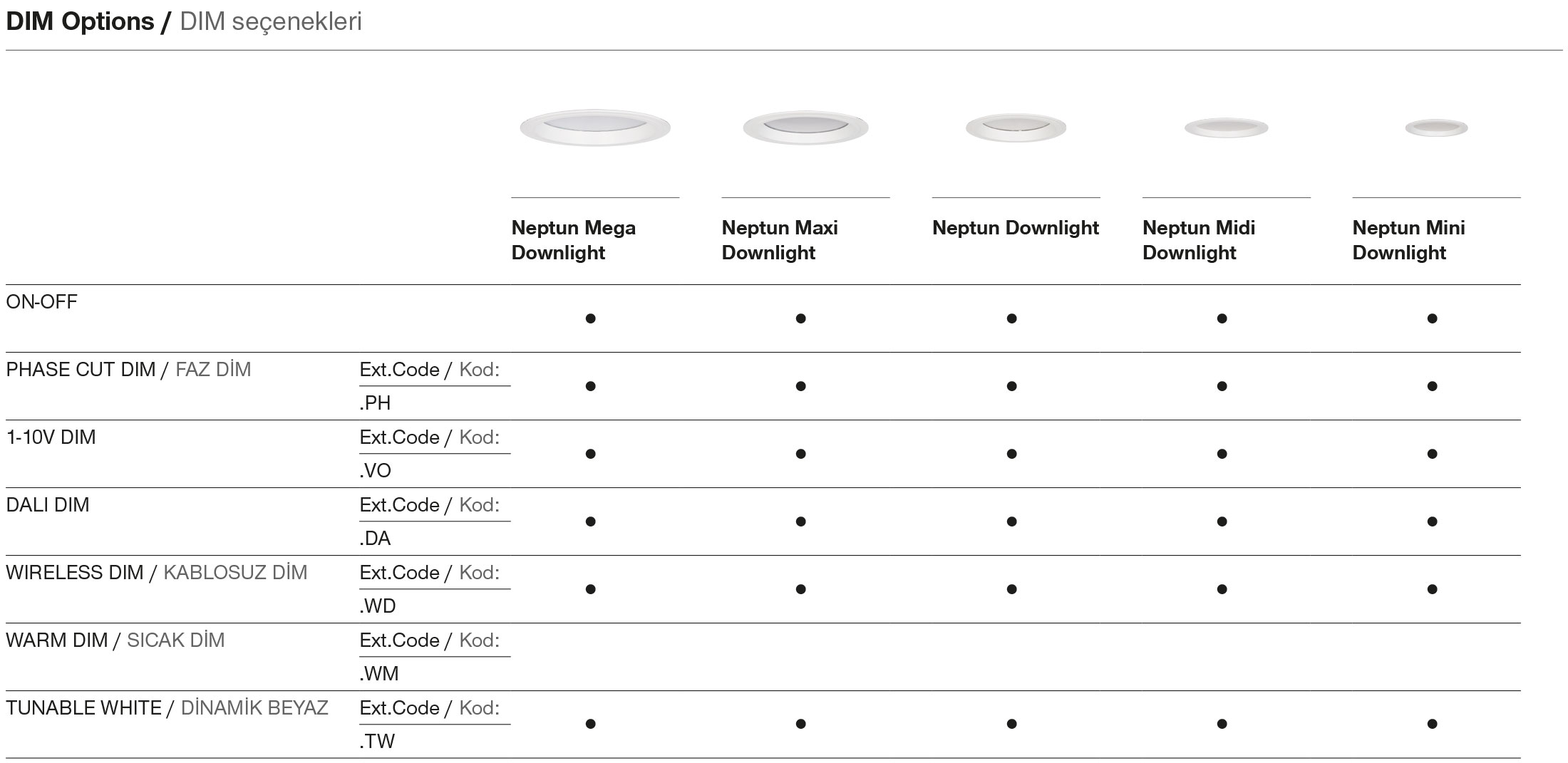 | 835 | CRI>80 - 3500K | 935 | CRI>90 - 3500K | ![]() | 03 | black | |||||