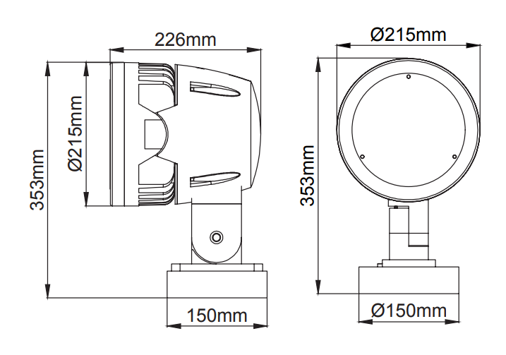 -- Projecteur LED avec sortie lumineuse symétrique.