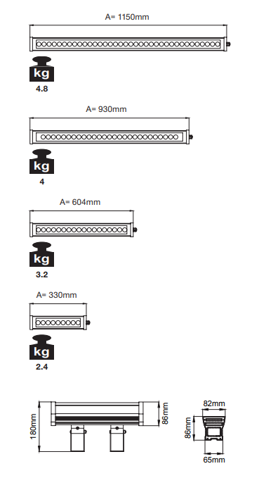 | 1150mm | 44W | CRI>80 | O07.WL.16020 . (..) . (...) . (..) . (..) | 2700K | 4460 |
