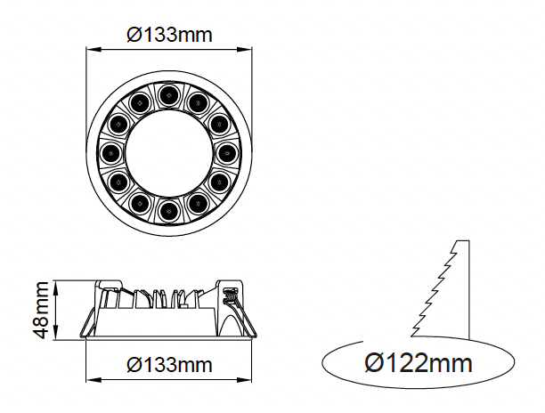 | 835 | CRI>80 - 3500K | 935 | CRI>90 - 3500K | ![]() | FL | 48° - Überschwemmung | ![]() | 03 | Schwarz | ||