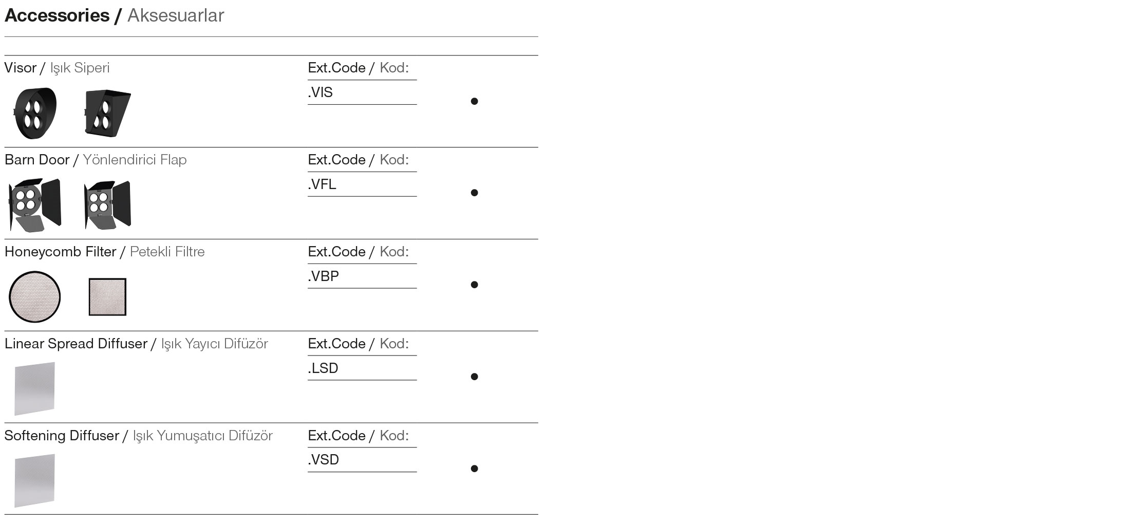 | 12 | 12W - 350mA | 830 | CRI>80 - 3000K | 930 | CRI>90 - 3000K | ![]() | M.E. | 34° - Medium | ![]() | 02 | ral 9010 |