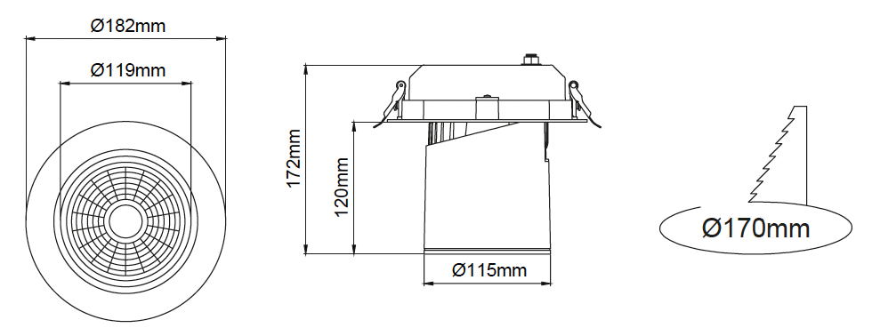 | 35 | 35W - 900mA | 830 | IRC>80 - 3000K | 9830 | IRC>98 - 3000K | ![]() | PS | 20° - Tache | ![]() | 02 | ral 9010 |