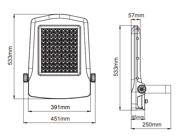 -- LED-Projektorleuchte mit symmetrischer Lichtabgabe.