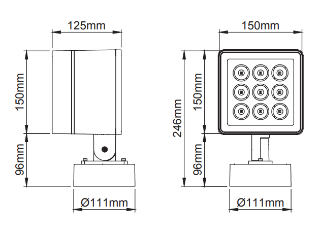 -- Projecteur LED avec sortie lumineuse symétrique.