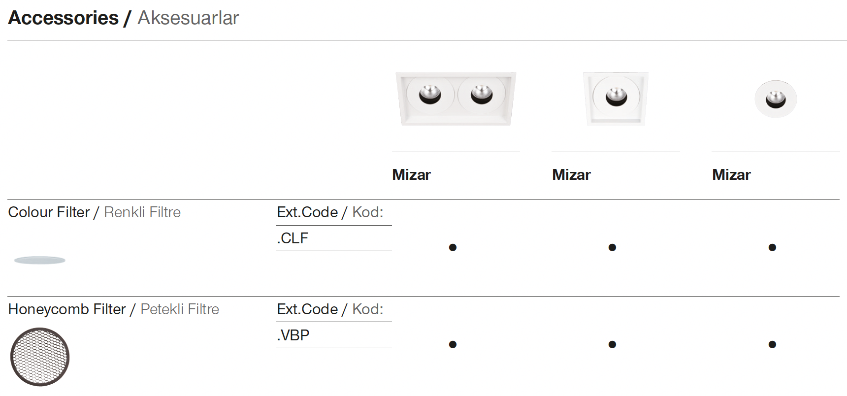 | 7 | 2x7W - 180mA | 827 | CRI>80 - 2700K | 930 | CRI>90 - 3000K | ![]() | SP | 2x20° - Spot | ![]() | 01 | white |