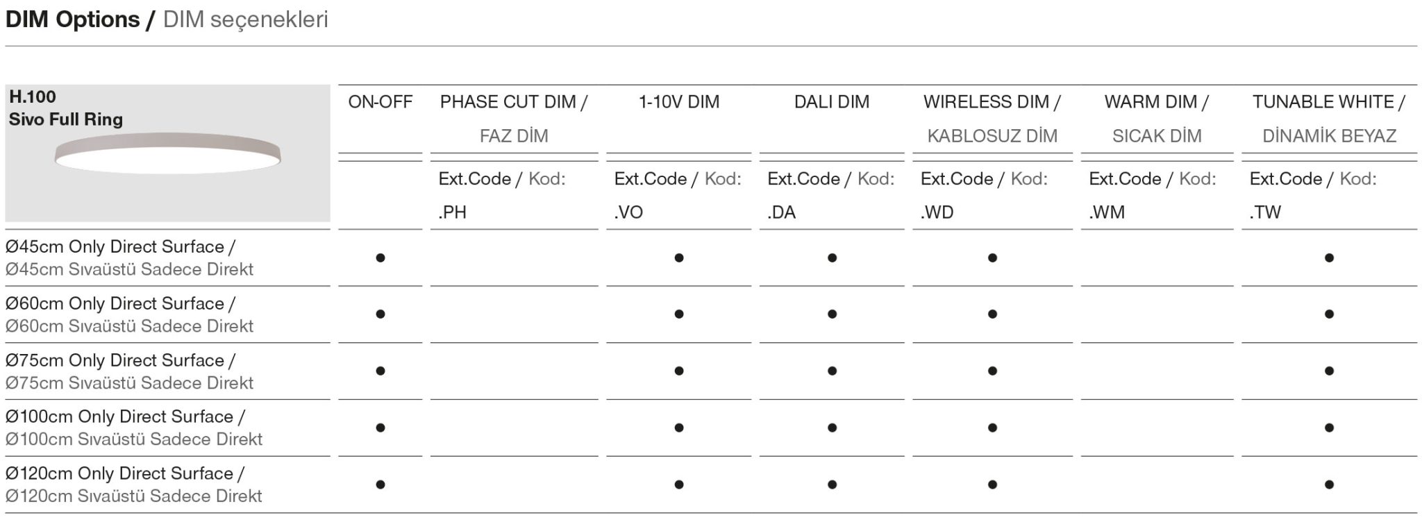 Alüminyum gövde. Opal veya mikroprizmatik difüzör seçenekleri mevcuttur. Şebeke gerilimi: 220-240V / 50-60Hz. 1-10V, DALI, Casambi DIM, Dinamik Beyaz DALI, Dinamik Beyaz
