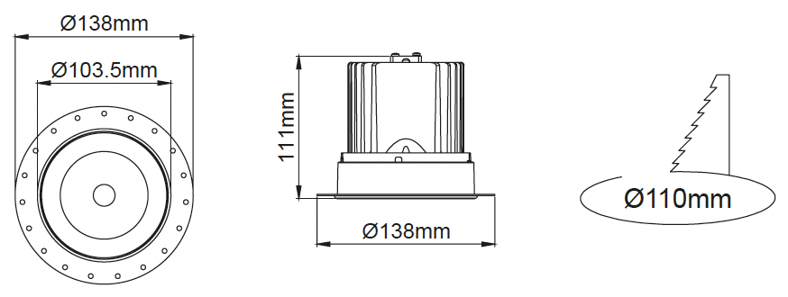 | 24 | 24W - 600mA | 830 | CRI>80 - 3000K | 9830 | CRI>98 - 3000K | ![]() | MICH. | 35° – Mittel | ![]() | 02 | ral 9010 |