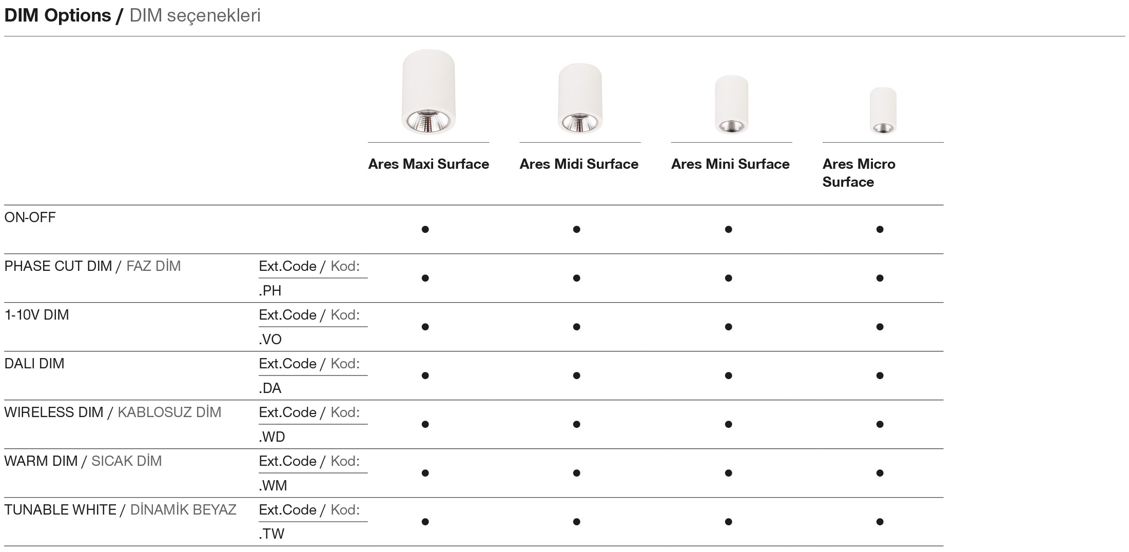 | 830 | IRC>80 - 3000K | 930 | IRC>90 - 3000K | ![]() | MOI. | 23° - Moyen | ![]() | 02 | ral 9010 | ||